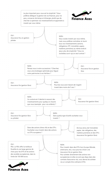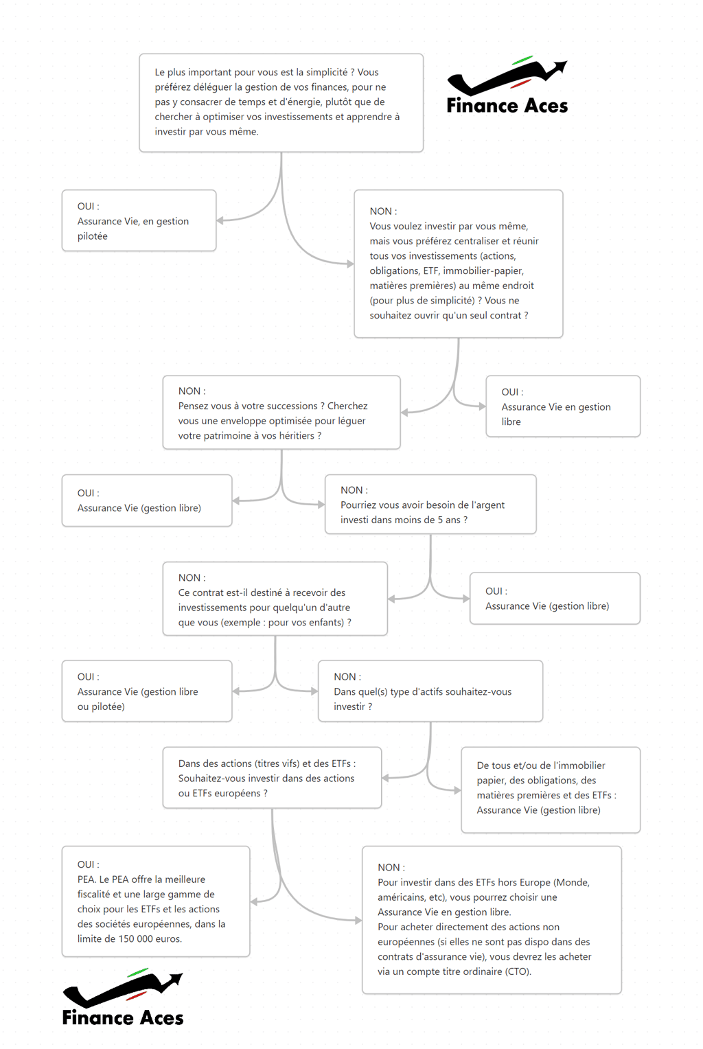 Constatant qu'il y a déjà pléthore d'articles de qualité accessibles gratuitement sur le sujet (c.f. les recommandations de la section "Pour aller plus loin"), Finance-Aces vous propose plutôt de vous aider à hiérarchiser ces informations de façon simple, afin que vous puissiez choisir la meilleure enveloppe pour répondre à vos besoins. Notre arbre de décision devrait vous permettre de savoir laquelle choisir entre le PEA et l'assurance-vie. Avant cela, gardez en tête que vous pouvez ouvrir plusieurs de ces contrats : vous pouvez ouvrir un PEA, tout en ouvrant autant d'assurances-vie que vous le souhaitez.